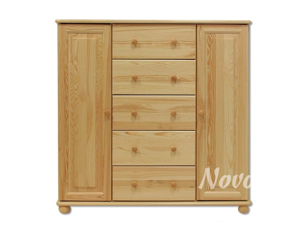 Komoda s 5 zásuvkami, která je vyrobena z kvalitního borovicového dřeva, které přinese do Vaší domácnosti tu správnou přírodní atmosféru a vůni dřeva. Základní borovicové dřevo je bez moření, můžete si však objednat i moření olše, dub, grey nebo ořech za 10% příplatek. Jednotlivé části nábytku tohoto výrobce lze různě kombinovat, čímž docílíte dokonalé harmonie a přitažlivého vzhledu Vašeho domova. Poněvadž má dřevo povrchovou úpravu proti škůdcům a vy budete mít zájem namořit si nábytek sami, napište do poznámek k objednávce - "Bez povrchové úpravy".