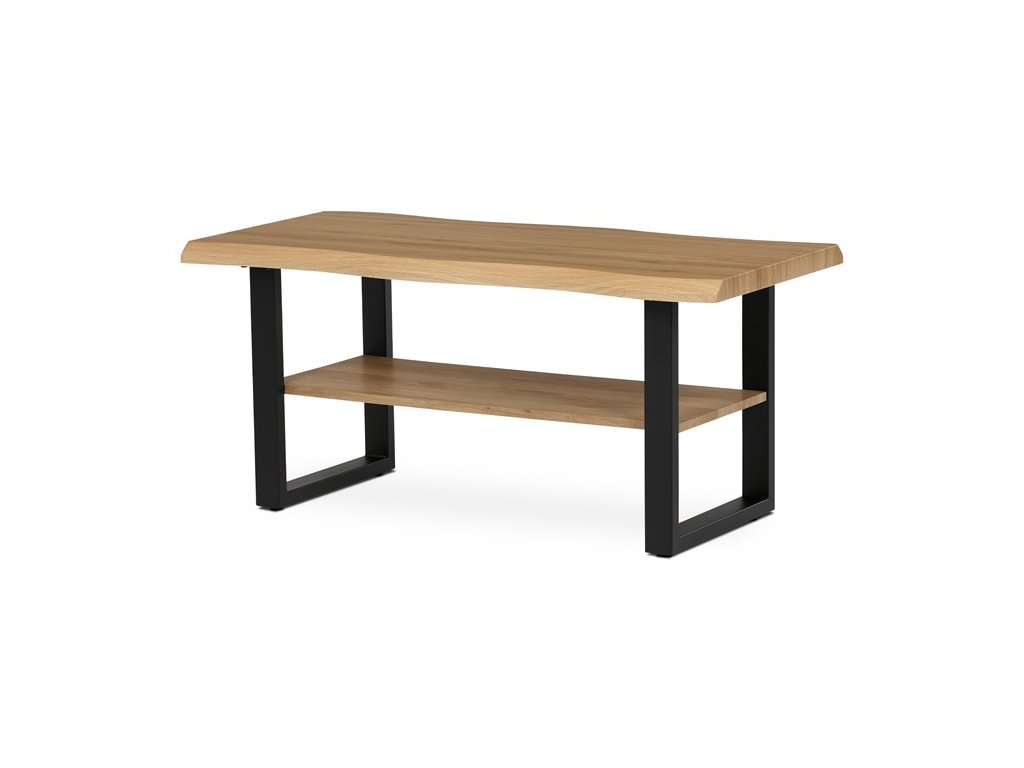 Konferenční stolek zaujme svým jedinečným designem v dekoru přírodního dubu, který přináší do interiéru nádech elegance. Robustní konstrukce kovu zajišťuje stabilitu a dlouhou životnost. Atypický tvar MDF desky dodává stolku vytříbený vzhled a spodní police poskytuje praktický úložný prostor pro knihy či časopisy. Tento stolek je nejen stylovým, ale i praktickým doplňkem pro každou domácnost, kde bude skvěle ladit s ostatním nábytkem v podobném stylu.