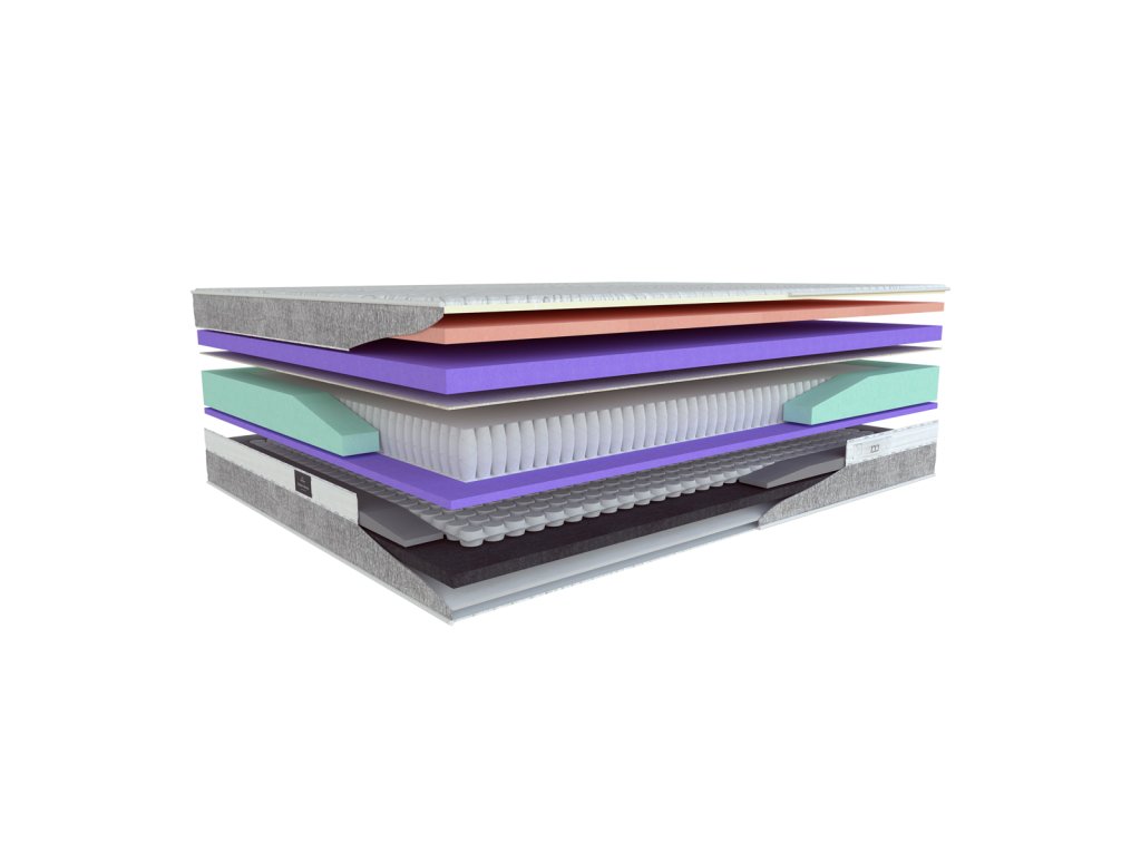 Revoluční novinka v segmentu matrací s taštičkovou pružinou. Systém dvojího pružení je progresivní v tom, že matrace bude vyhovovat nejširšímu spektru zákazníků. Pod uživatelem nižší váhy fungují mikropružiny, při vyšším zatížení se do procesu kopírování zapojí i hlavní středová pružina. Matrace tak detailně kopíruje uživatele různé váhy i tělesných proporcí. U tohoto systému jádra matrace se dá bez přehánění hovořit o bodovém snímání těla uživatele. Proložením jednotlivých vrstev taštiček pěnou LAVENDER bylo zamezeno nežádoucímu houpavému pocitu známého z běžných pružinových matrací. Do odnímatelného potahu byla všita paměťová pěna EVO MIND, která už tak vynikající komfort jen umocní. Jedná se o pěnu výborné průdušnosti, která v kategorii paměťových pěn nemá obdoby a spolu s taštičkovým jádrem tvoří velmi vzdušný celek.
