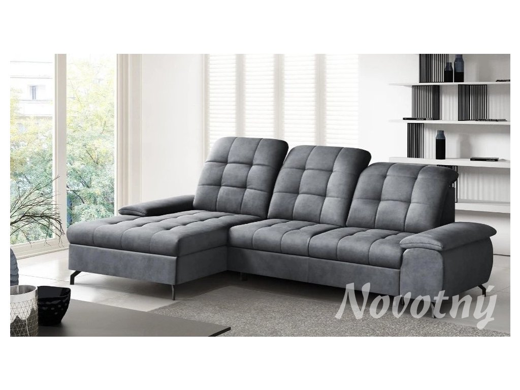 Sedací souprava BARON S je stylová rohová sedačka ideální pro menší interiéry. Díky rozkládací funkci a úložnému prostoru poskytuje maximální pohodlí a praktické řešení. Disponuje regulovatelnými opěrkami hlavy a elegantními černými nohami. Dostupná v levé nebo pravé variantě.