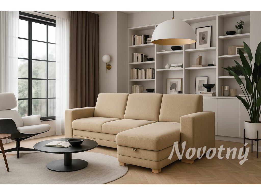Klasický čistý design a maximální pohodlí, to jsou přednosti sedací soupravy KLÁRA. Je vybavena velkými úložnými prostory s rozkladem na lůžko pro příležitostné spaní.