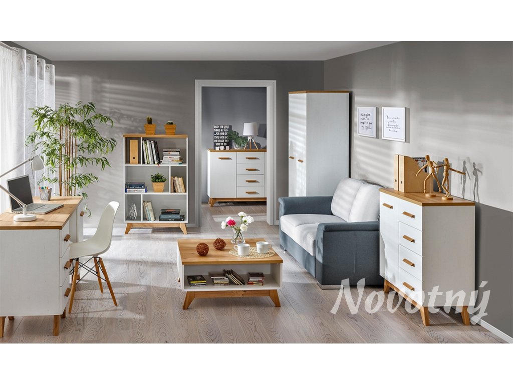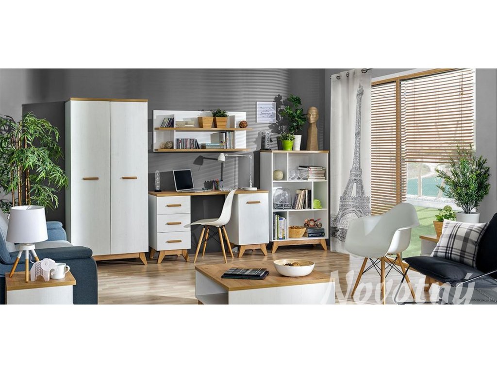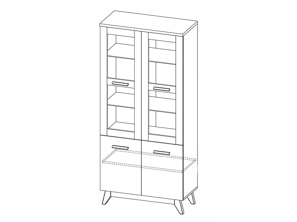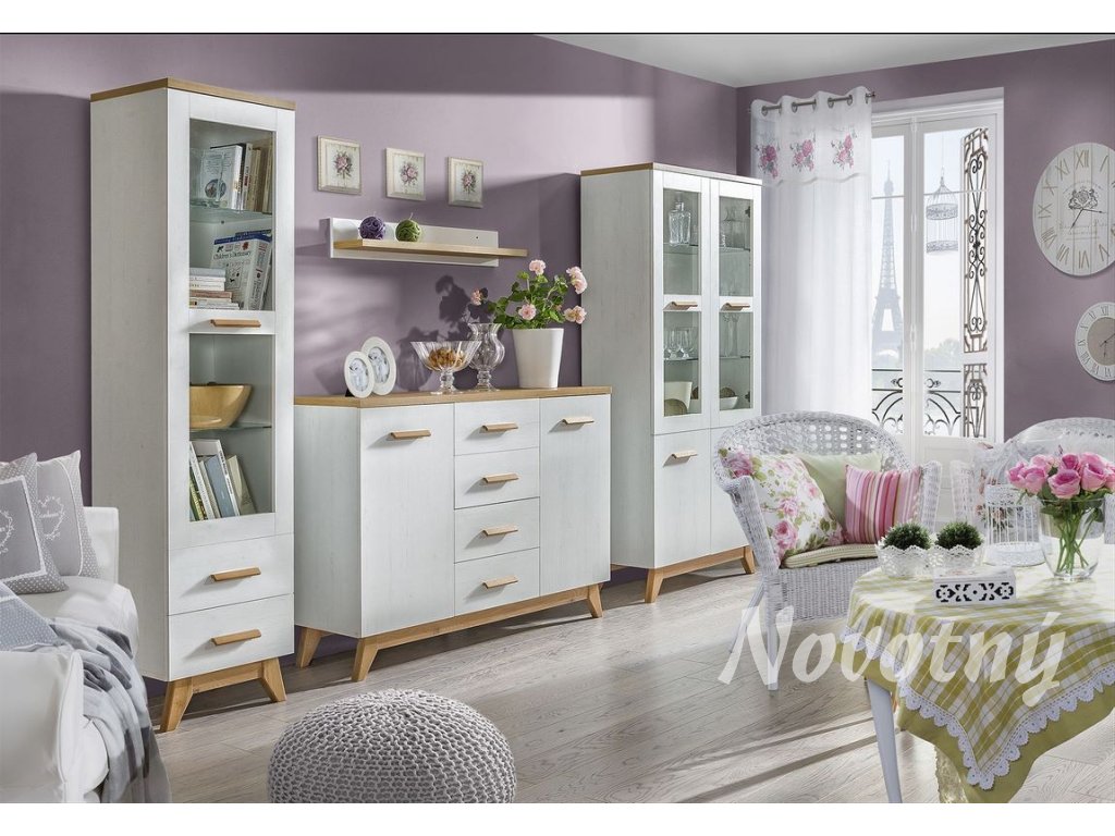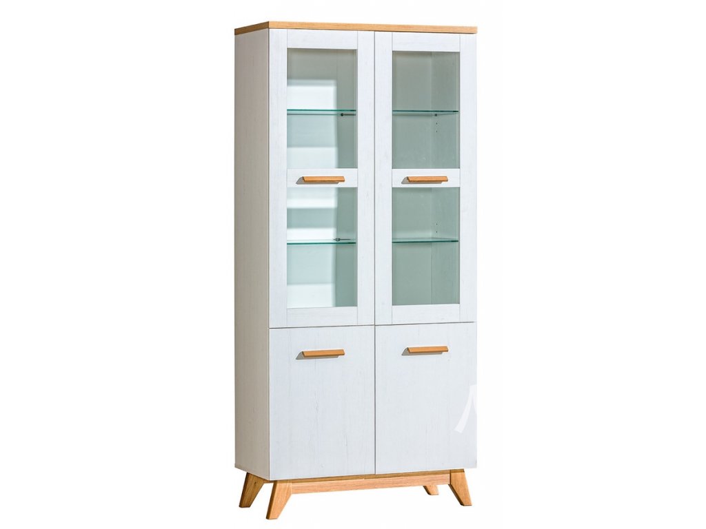Dvoudveřová vitrína ze sektorové řady SVEEN. Jedná se o stylovou kolekci nábytku skandinávského stylu, který je vhodný jak do ložnice tak do obývacího pokoje. Nábytek zaujme především svými dubovými nožkami a úchyty. Barevné provedení je borovice andersen v kombinaci s barevným odstínem dub nash. Nábytek je vyrobený z kvalitního lamina, hrany jsou zakončeny ABS páskou, která zvyšuje odolnost proti poškození. K vitríně je možné dokoupit LED osvětlení. Dodáváme v demontovaném stavu.